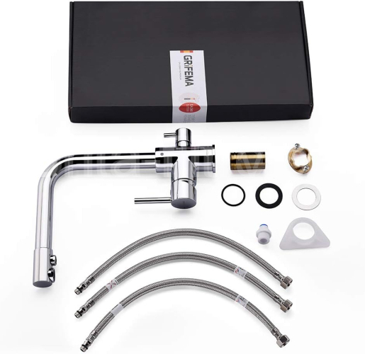 Vysoko kvalitná trojcestná batéria. Určená pre kuchynské linky a drezy na oddeleny výdaj filtrovanej studenej vody bez nutnosti vŕtania otvoru pre externé výdajné kohútik. Použitie s filtrami Brita Purity. Inovatívny dizajn a vysoká kvalita prevedenia výrobku vytvorí ústredný bod vašej domácej kuchyne alebo firemnej kuchynky. Všetky vodné cesty sú bez kontaktu s kovom, kvalitné keramické kartuše. Záruka 5 rokov!